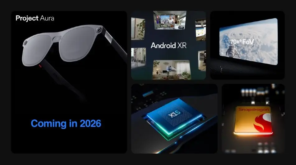 三星此前已演示基于Android XR的Galaxy XR头显,而谷歌与Xreal的联手开发代号“Project Aura”的原型也曾被公开展示,展示了更接近眼镜的轻量化外观与Android XR平台的生态互通能力。